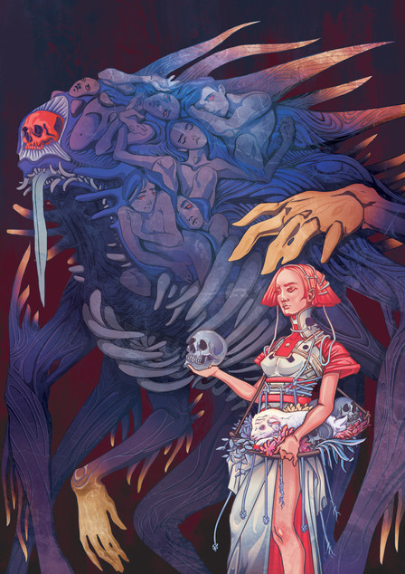 very epic. though it feels like the skull is placed a tad too low on her head. the colors are gorgeous.
