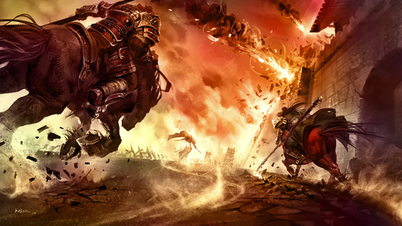 I like this a lot! That warrior-dude is definitely kicking ass. Great job!