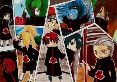 Okay, this probably merits some explanation. But I'm too lazy to explain. I have no clue why Akatsuki is trying to make a pyramid. Maybe they're competing in one of those cheerleader tournament things. The world may never know. XD And some of these chibis are horrible. You can pretty much tell where I started to get lazy with the lineart and shading. Heh... Oh well. I wanted to get something up for Naruto fans, seeing as how I haven't done any fan junk for a while. Or any original junk, for that matter... Anyways, enjoy!It might be hard to figure out who says what, due to the pyramid shape of this drawing. I'll try to help you out with that...