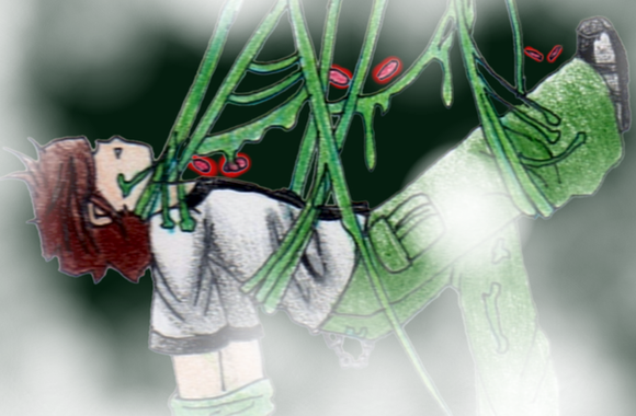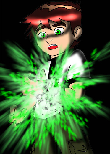 *green mist flows out of the omnitrix and surrounds ben before entering his body forcing him to close his eye*