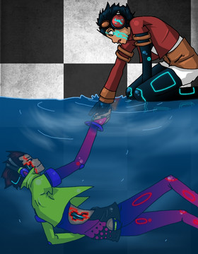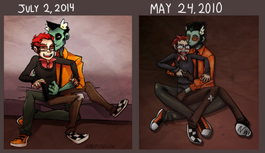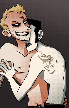 The Chars are Hanna and DotDotDot from 'Hanna Is Not A Boys Name!' It's a great comic and I HAD to do a fanart about it XD I really picture these two in a relationship (yaoi fangirl inside).DotDotDot is a Zombie, he doesn't remember his life, or his name. Hanna is a paranormal investigator, so he's fine with the fact that a zombie just became his partner.