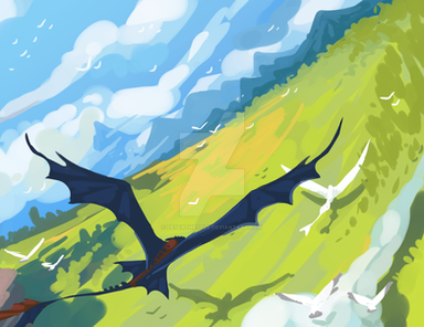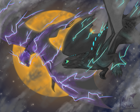 another quick 30 min painting (actually 27 minutes), and this ones like 300x sloppier then the last but oh wellbased on the httyd 3 trailer/tv spot i keep seeing on my tv!!! the bit i based it off of shows toothless n the lightfury flying in a storm and the lightfury goes invisible and then reappears beside toothless and theres lots of lightning and i am so excited for this one specific scene
