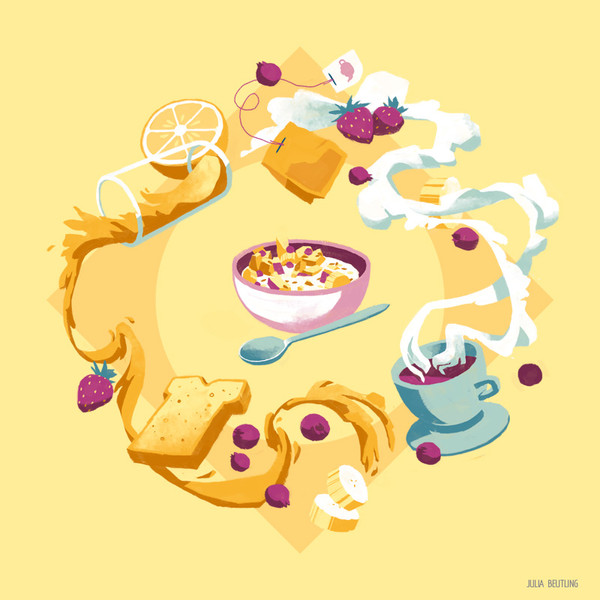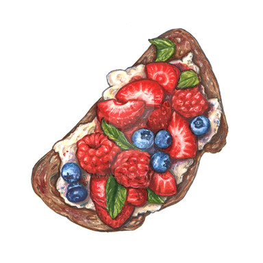 #blueberries #bread #breakfast #cheese #digital #drawing #figs #food #goat #illustration