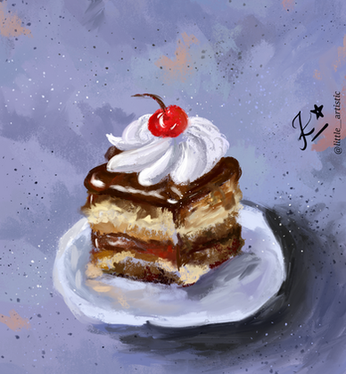 Hi Lua, I think this looks fantastic! It is incredible how realistic your work looks, yet each one still retains that gorgeous expressive feeling that comes from a painting. This is no exception. I love the colors. The vibrant hues in the berries contrasted against the cream and the cake itself really make this one pop. As usual, amazing job!Β