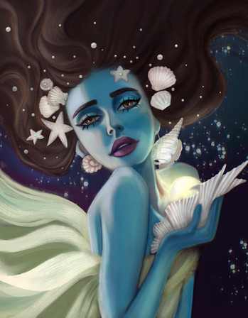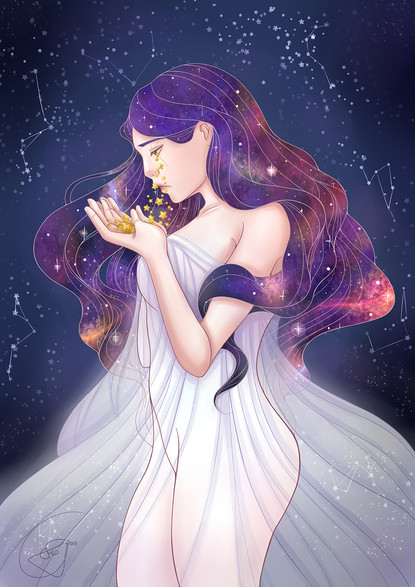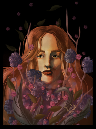 An enthralling visual. The colouration is vivid, luminous and flowing, and involves great variation, but it all comes together properly on an even colour palette. The lighting on the lady's hair and skin is in noticeable yet not sharp contrast to the shaded areas, influencing a soft yet very apparent mood meant to be conveyed. The lacy wings of the butterflies add to the ethereal quality of the picture, as does the faded, blended colouring of the background. Finally, the gentle, neutral curve of her supple, beautifully detailed lips, and the resigned way she keeps her eyes closed, as though she is still looking downwards somehow, almost seems to command in the onlooker a moment of respect and consideration for her mild sadness. A picture that evokes more and more thought in the beholder, the longer they gaze upon it.