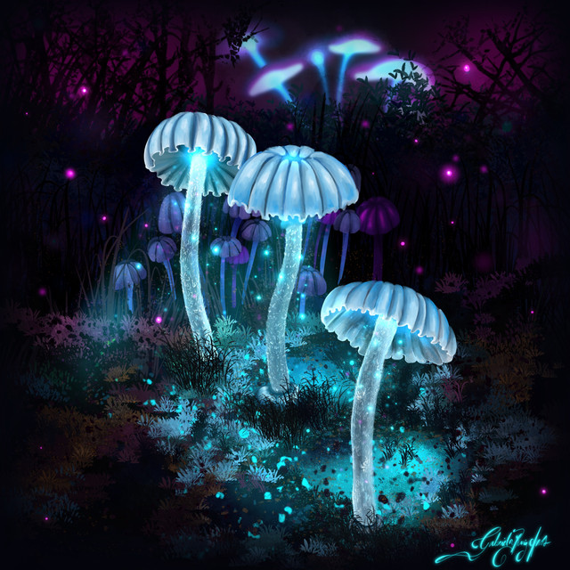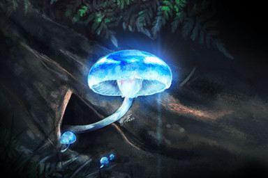Sparkly, glowy alien blue shrooms. Eat them and you'll be zombified!Β