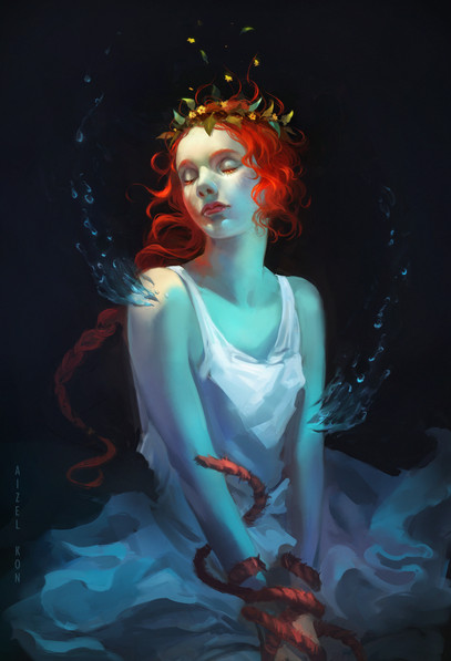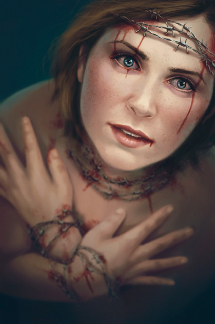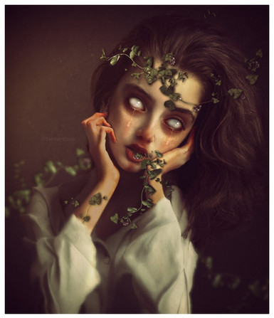 #around #climbing #closed #crying #eyes #hair #neck #portrait #red #redhead #staring #tears #tight #vine #woman