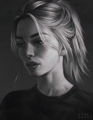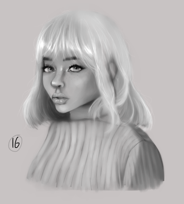 I also think that this HAS to be your style one day. For me it looks really realistic, although her eyes seem to are a little bit bigger than they really would be- but exactly this makes her really beautiful. Also I admire how you put on lights on her lips, eyes and nose and the shading of her face really looks great. Although it is frustrating for you I hope you keep up with this style!
