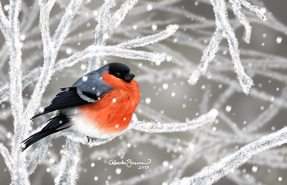 #bird #black #branch #breast #christmas #cold #crisp #crispy #grey #head #orange #ornithology #season #seasonal #smallbird #snow #tail #wings #winter #birb