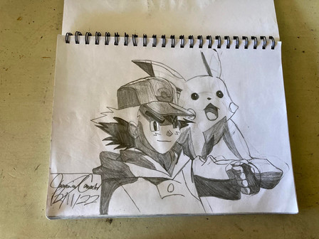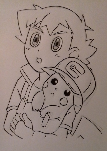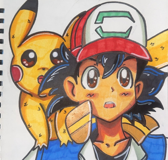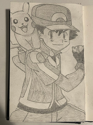 #ash #anime #ketchum #notebook #pencildrawing #pendrawing #pikachu #pokemon #sketchaday
