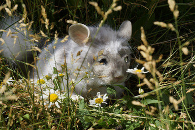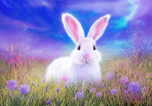 On a bright summer day, a white rabbit stands up on his hind quarters to peaks out from long golden grass. It glances back your way as if it has something to say to you. Perhaps you should see where it intends to take you.