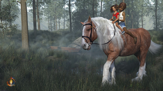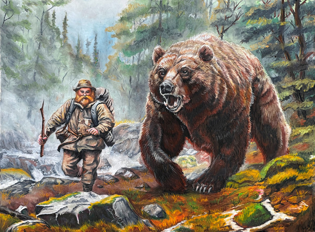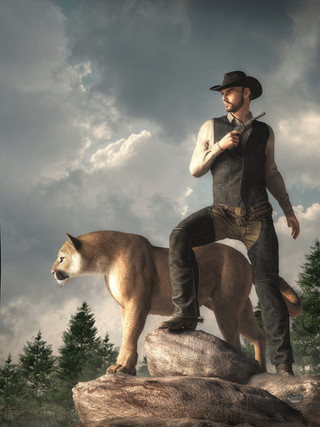 Prints: danieleskridge.com/featured/jo…A couple joyrides on a motorcycle along a forest. The driver is not human though, rather, he is an anthropomorhpic black german shepherd that wears a black leather jacket. The woman rides behind him wearing a white top and brown pants. One of her legs is a prosthetic.