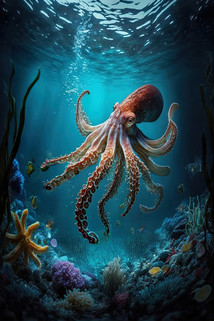 This is the latest in my aquatic creature series depicting undersea life. A few weeks ago, I published "Warriors of the Primeval Sea" ( bit.ly/1sHjcCU ) which featured an octopus battleing it out with a plesiosaur. I like the way the octopus looked so much that I decided to make this work featuring him alone.