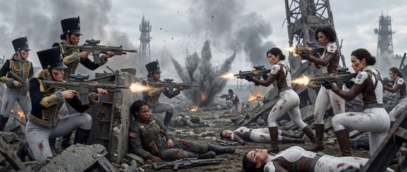 #scifi #battle #military #digitalart #gun #militaryuniform #fanart #characterdesign #warrior #belly #defeated #leather #midriff #sleepyfetish #bellyfetish #defeatedheroine