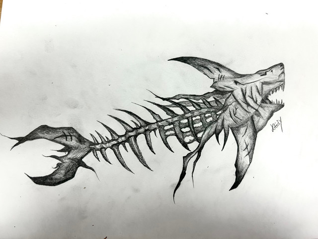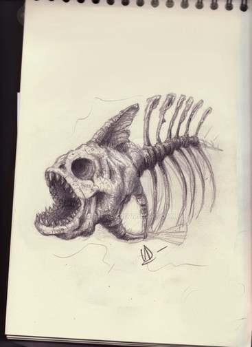 #creepy #drawing #fish #horror #ink #art #halloween #skeleton