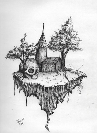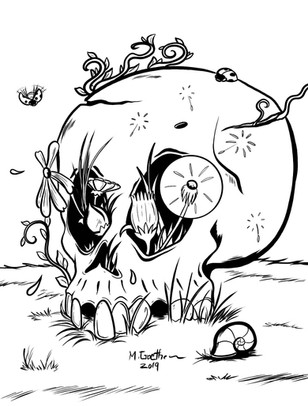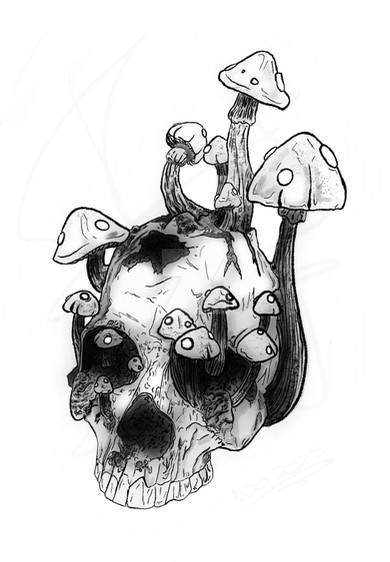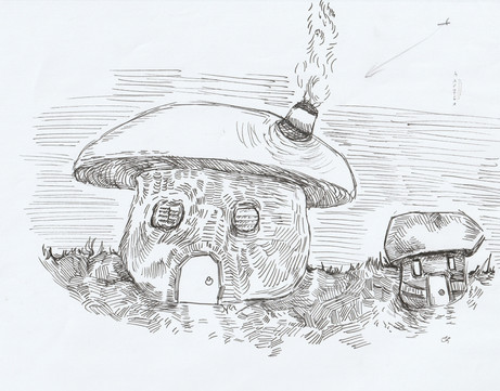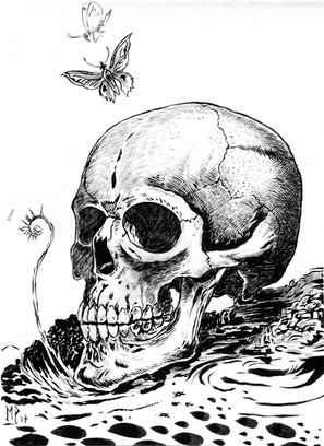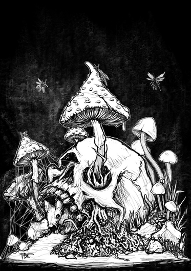 #death #drawing #fairy #home #inherit #inheritance #life #meek #mushroom #skull #art #penandink