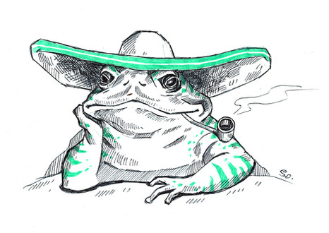 #cartoon #traditionalart #sketch #ink #doodle #frog #lizard #pen #drawing #pipe #smoking #toad