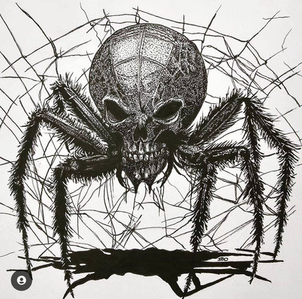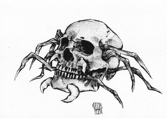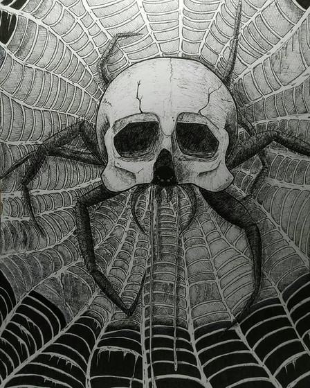 #crawly #creepy #drawing #horror #penandink #scary #skull #spider #web #art