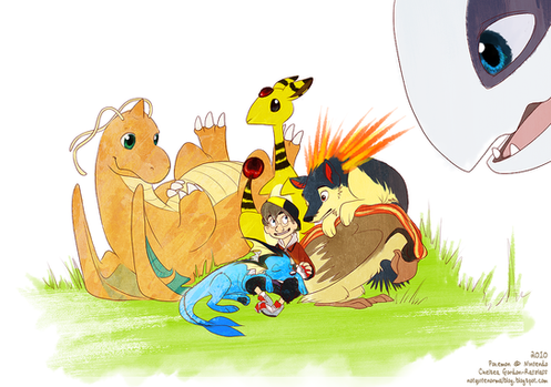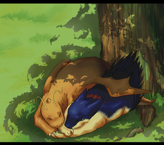 San (jolteon) and Pikachu are exhausted from traveling, and while Pikachu rests against his closest friend, San revels in the warmth of the fire, as his conciousness continues to drift in his old age.