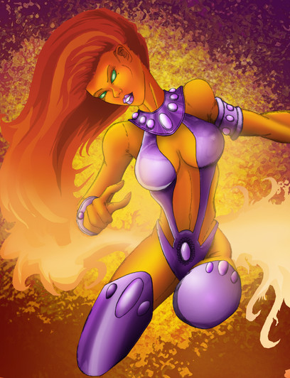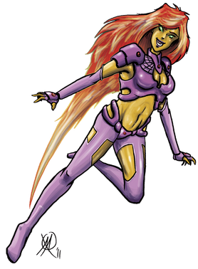 O_O This is your best yet....... The coloring looks great Sarah-chan!! I had no idea this is what she looked like... Heh.. When you told me Starfire, I was thinking teen titans.. I like this look for her better. Lol.