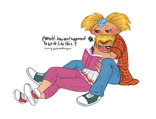 I felt like drawing something super fluffy! Arnold finally (accidentally) sees Helga's poetry properly and cant help himself.Hey Arnold! (c) Craig Bartlett