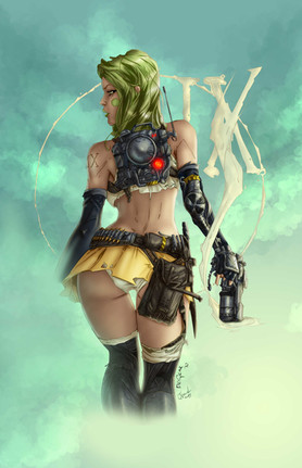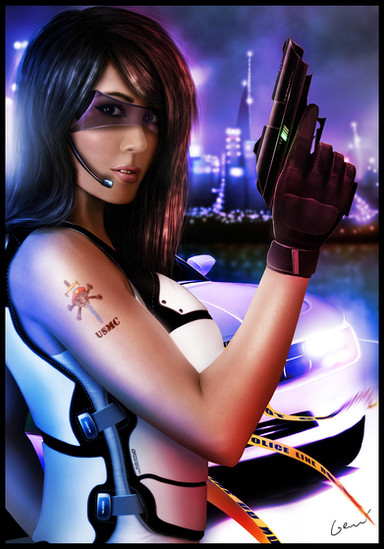 I love that background and the leather shading. Goddamn is she skinny though.