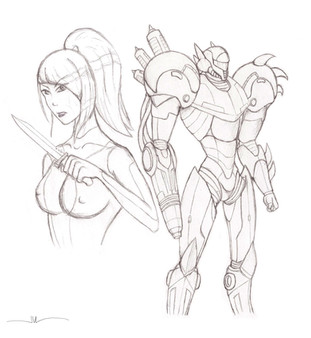 well i need practice with girls... so i thought i would draw my favorite female character ever XD! Yes, with all the vampire and fantasy stuff i like like... Sci fi just thrills me XD and the Metroid series pretty much... how do i put it... gave me a hero to look up to. Samus was covered with armor through the whole game and she was a hard and ass kicking female which you do not see in the game world often... IE Lara and some of the other VG heroins who show off skin and naughty aptitudes with nothing to back up their strength in the game but boobs >__>.Anyways... i like how this looks so far XD and if i ever get the time i might make it the cover for a online Metroid comic XD i have a story sorta... i have always wanted to do one but never managed to finish it lol