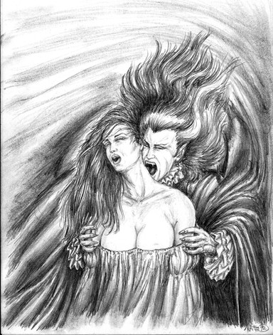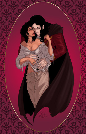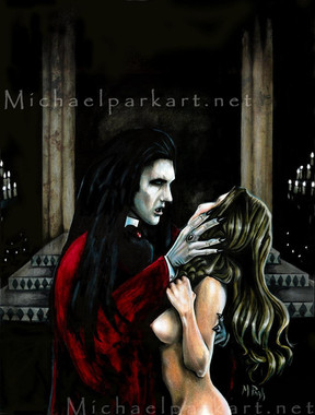 oh I love the hammer films!, I can see the hammer influence in this peice! I like the vampire the victim and the cool gothic castle'esqe background' I like those kind of films as thay take the subject of vampires as thay've always been in fokelore as undead monsters! christopher lee is dracula for me and boris karloff is my favourite frankenstiens monster!
