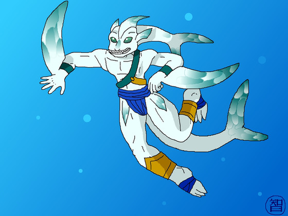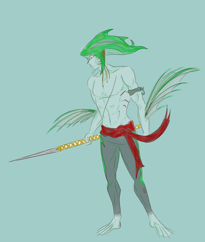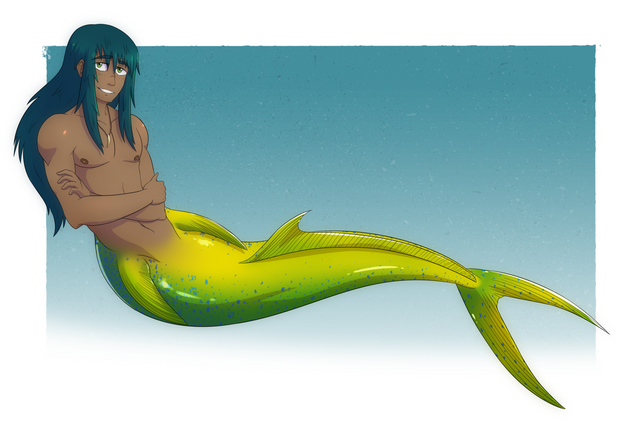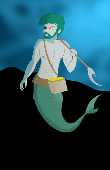 Well I think I'm done making OCs for a tiny bit. XD Gotta work on an art trade next. lol Anyways, here's my new OC, Reef. As you can tell he's a merman. If you're thinking, "hey, this sort of looks familiar", you'd be right. You've seen the same species here: . The species was created by but she gave me permission to create my own OC of thes same species and so I did. XD If you need proof of permission, here it is: [link] Also, if you want to see details of Reef's psychokenesis powers and harpoon details, go here: [link] So, on to the bio:Name: Reef Wave