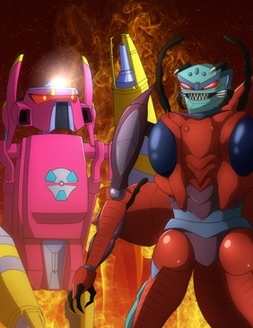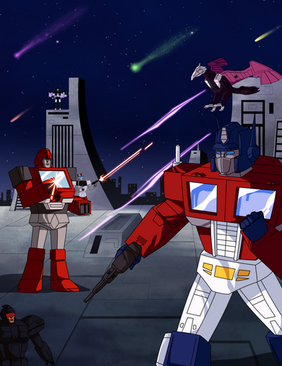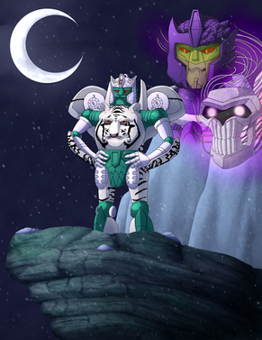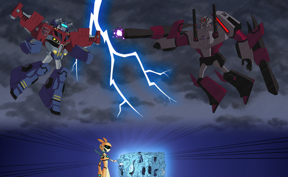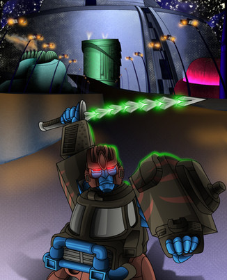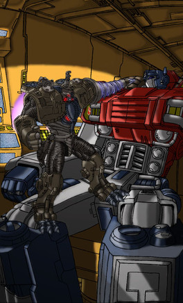 So making this pic was a real treat for me!Anyways I really like how this pic turned out! It's meant to take place within his spark (like that scene from when Tankor reprogrammed the Diagnotics Drone). Wasn't originally goint to include Rhinox but I think it improved the pic. I even made him "sparkified" like in the episode "Fallout". They litterally use Photoshop's neon filter to give him that look too! XD