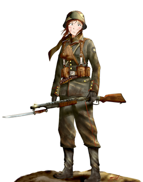 I would say she needs to be throwing a m9, But the Germans are to smart to use those.