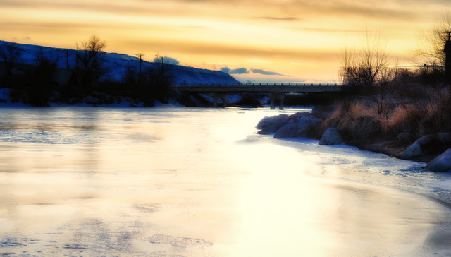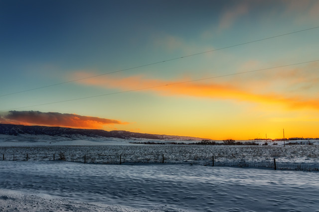 This could be Sheridan, Wy. I see this all the time now. Those are coal cars and they look empty. Beautiful catch on the lighting and the snow.