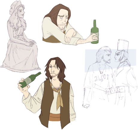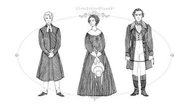 Sometimes I doodle when I'm supposed to be doing something else.They all are caught in the middle of one long treacherous riddle. (I was obviously listening to 'The Riddle' from The Scarlet Pimpernel when I drew these guys.) I'm still not sure I picture Marguerite properly yet though, it's difficult for some reason. And I really can't help but draw Chauvelin in a way that makes you feel kind of sorry for him.