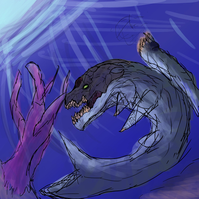 Swarms of Baracule are often nicknamed "death darts". With a nickname like this, it should be obvious how local residents view the species.Baracule are seafaring predators with voracious appetites and an uncanny habit of swarming larger creatures. A Baracule's main body is a small, cylindrical object with some resemblance to a sausage, and houses a compact collection of organs, the largest of which is made to continuously intake and shoot out water, propelling the entity (and its massive jaws) like a squid. With their streamlined jaws closed, they can achieve very high speeds, and spasm violently to make sharp turns. A Baracule is a small creature with a smaller stomach, and can't be active for long without food. But the species finds ways around this. Many ways.