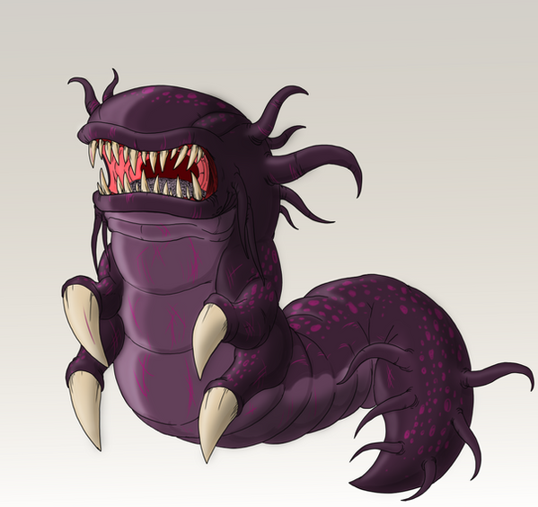 "A thick, blubbery monstrosity of mismatched proportions. This dense monster's body possesses a redundant set of internal organs that enable to shrug off most attacks - even those that pierce its protective skin. The Boilteeth is not an adept runner, but can make quick lunges and even gallop on all fours for brief moments, though this is very tiring. Its chitinous arms are incredibly fast and strong enough to crack bone between their blades, but work best against smaller foes with less weight."The Boilteeth respirates very slowly, and is resilient to suffocation or poisonous gas. It cannot see, and requires sound, ground vibration, or intense heat to locate prey."