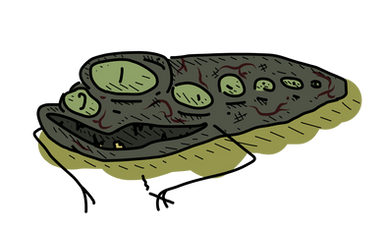 Mounds are not hybrid monsters, nor are they natural ones. A Mound is created when Clade fuses together a conglomerate of flesh and animates it with magic.Mounds are not particularly dangerous at first. They are slow to move, slow to react, and generally slow in everything they do. They may look scary with their oversized mouths and sharp fangs, but the only real way one could bite you is if you stood still and allowed it to (which would mean you are insane). Unfortunately, Mounds become more dangerous as they rot (they aren't entirely alive, so things still eat away at them) and attract flies. The flies may not seem particularly threatening at first, but when maggots are laid in the monster they absorb quantities or dark magic and hatch into highly aggressive insects that buzz angrily around the Mound and attack anything that comes near.