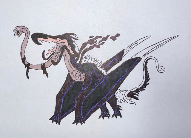 Interestingly enough, the Shiversnatch can be partially tamed. This sounds counterintuitive for a force aligned with death, but just as the Shiversnatch can sense despair and resignation, so too can it sense strength and fortitude, and what's more, appears to feel something approaching respect for these emotions. If sufficiently swayed, it may follow their owner around without any intent to kill, simply watching said owner from a distance and seeing them brave its territory just as it does. This interest usually wanes harmlessly with time, but grows into a potentially symbiotic relationship if its subject is also interested in death or is a hunter themselves. The "tamed" Shiversnatch does not express affection or desire closeness with these people, but will often stalk them during their own hunts and deliver finishing blows to their prey, taking only minor sustenance for itself and leaving the rest to its symbiote. It has also been known to enter conflict and save symbiotes from potentially fatal encounters. Whether this is due to an emotional connection to the hunter, practical assistance to a fellow force of death, or just a way to stave off boredom is unknown.