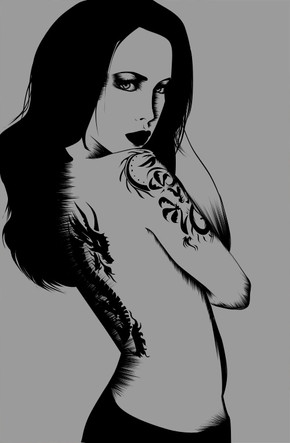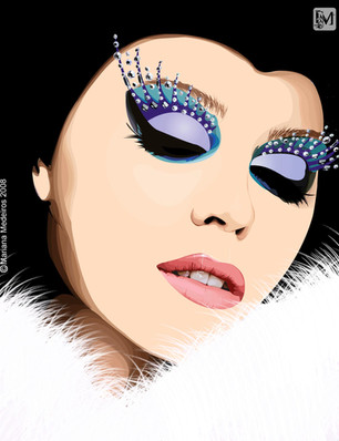 I would've vexelled the skin and clothing too. (The... original had clothing, right? If not, shading via mesh tool (or something similar; I don't know what program you used) would've done the trick just the same.) Technique on the hair is good, though, and the eyes are great.