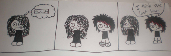 I've also noticed that their hair is a lot crazier than when I drew it on the first strip. Oh me and my lack of consistency.