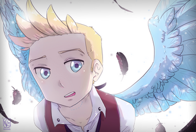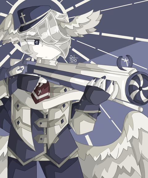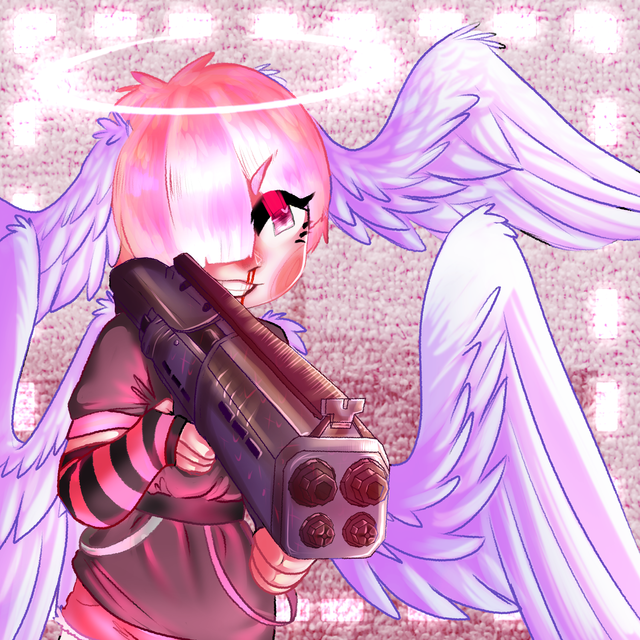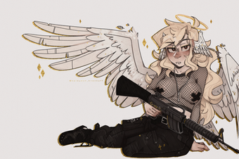 #angel #boy #cute #angelwings #blackandwhitehair #fluffytail #rifle