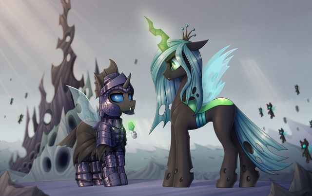 I wonder what you get when cross a changeling queen and an alicorn princess, let find out.