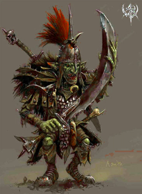 Now that's what the orcs are all about. Warhammer style and everything. What I like the most in the picture is his face and all the accessories on the armor. Warhammer orcs are the best but I alosl ike the orcs from all theo ther worlds yet in warcraft the orcs are just like those of warhammer but "noble savages". Whatever. Anyway Blizzard is obvioulsy plagiarizing Games Workshop in terms of style both in Warcaraft (Warhammer of course) and Starcraft (Warhammer 40k)