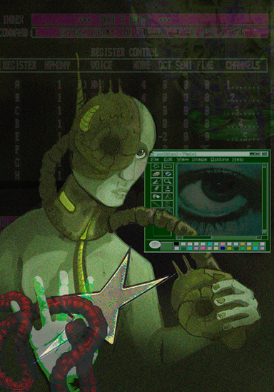 #digitalart #horror #body #magic #digitalpainting #baggage #cage #carnivorousplant #circuitboard #crowded #figure #floral #flowers #lockedup #organs #statue #windows95 #windows98 #zipper