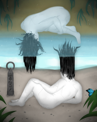 #digitalart #digitalpainting #horror #creepy #body #alchemy #concrete #emotional #figuredrawing #gothart #gothic #mask #peacock #photoshoppainting #shedding #statue #transformation