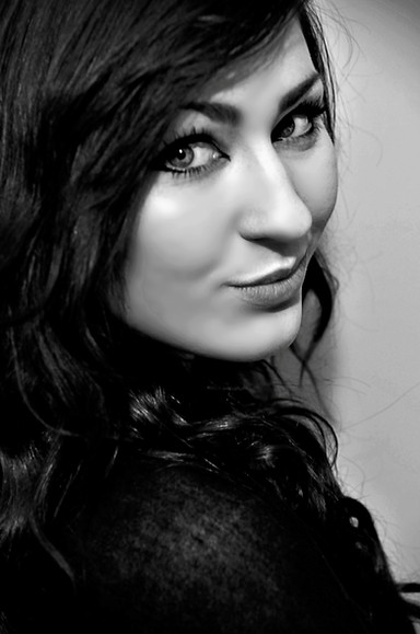 b/w is great. i like the turn, the look, makeup, shirt, hair... great work!