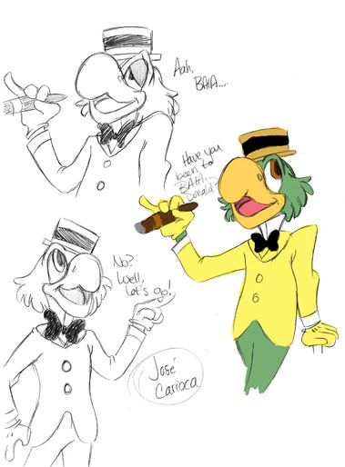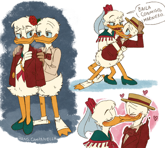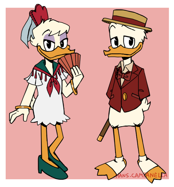 3) The feather doesn't make sense I guess but the story behind it is that I doodled him plucking one of Donald's feathers, but never finished it, and this drawing was supposed to go with it XD
