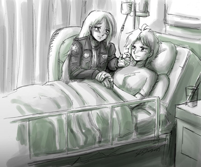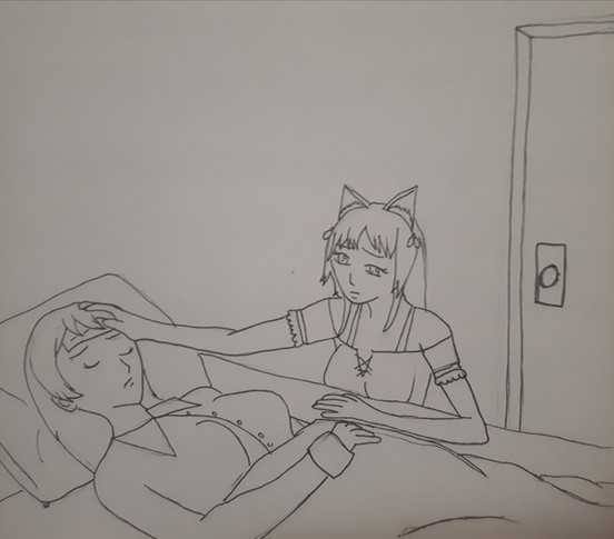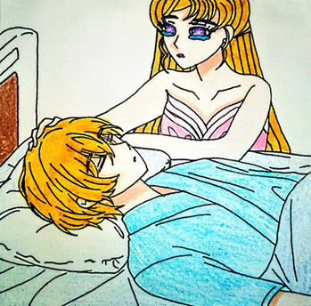 Hmm, this looks kinda weird, probably. Perspective (and backgrounds) are more things to practice in the future. 'u'Anyway, there's a CG in the game where Mio faints during one of the Teathre Club's rehearsals. Yoshio is aware of her weak body/anemia, but I thought it would be interesting if in the Audio Drama!verse Mio fainted while Yoshio was helping her practice for her play. Then he'd take her to the school infirmary and keep worrying about her since it would be the first time he saw her fainting. And he'd be confused as to why he's so worried.