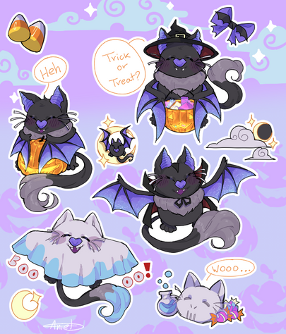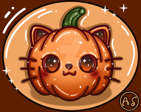 #anime #cat #cats #chibi #cute #design #halloween #kawaii #kyatto #manga #neko #pumpkin #sticker #etsyseller #etsyartist