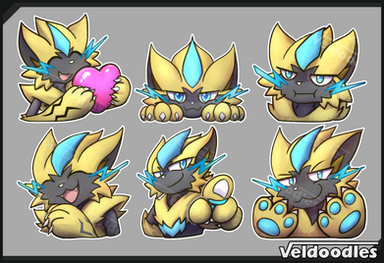 Zeraora and the shiny version! These are available in my shop as holo-buttons!
