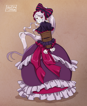 Here's a commission just finished for Eio-Eio-Eio that has a bit of a story behind it...Those who know me well enough will know that I have a very special place in my heart for the visual novel "Umineko no Naku Koro Ni/Umineko When They Cry." Even though I only read it a few years ago, it quickly became one of my all time favorite stories. My friend and collaborator Eio has... lesser opinions of it, and we have butted heads over this particular literary work more than a few times. It's all in good fun, though; I respect his right to have shit taste. Anyway, this has spawned more than a few inside jokes among us, even moreso seeing how one of his oldest OCs -- the noblewoman Bianca Amaretto -- started life as a recolor of the Golden Witch Beatrice.